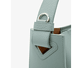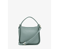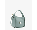 Bolsa de mão com um compartimento principal e fecho de mola. Bolso interior para telemóvel. Alça de ombro ajustável.