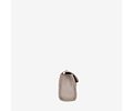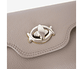 Pochete em pele genuína, na cor bege. Aplicação em torniquete para acesso à divisória principal. Alça de ombro em corrente. Aplicações douradas.