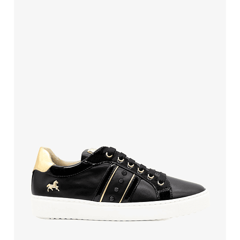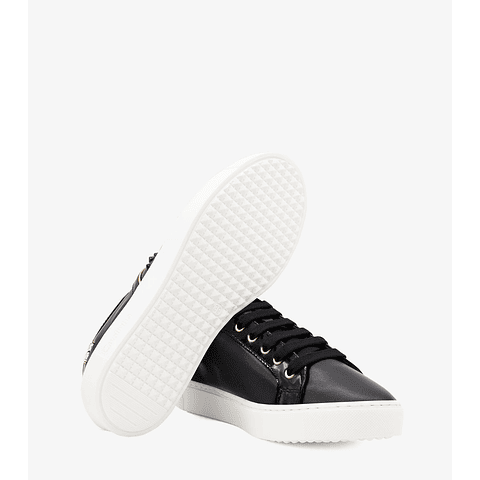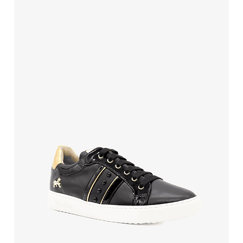 Sapatilha preta para Mulher em pele, com atacadores e ponta redonda.